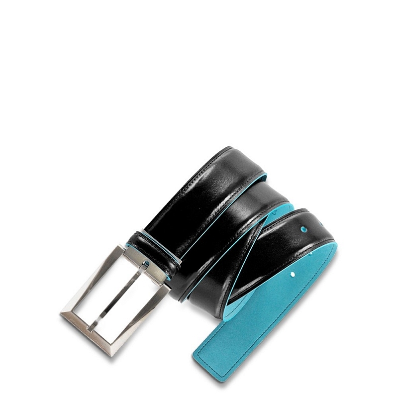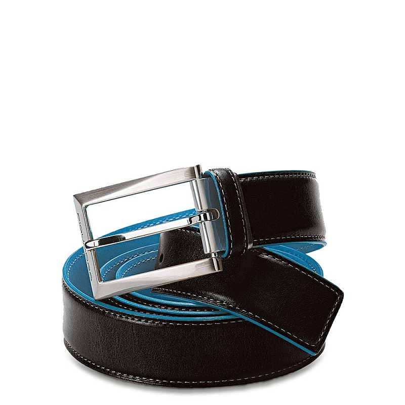 Curea pentru bărbați din piele naturală cu catarama cromată. Lățimea este de 3,5 cm si lungimea de 125 cm. Partea din spate este de culoarea albastra, culoare reprezentativa marcii Piquadro.